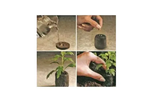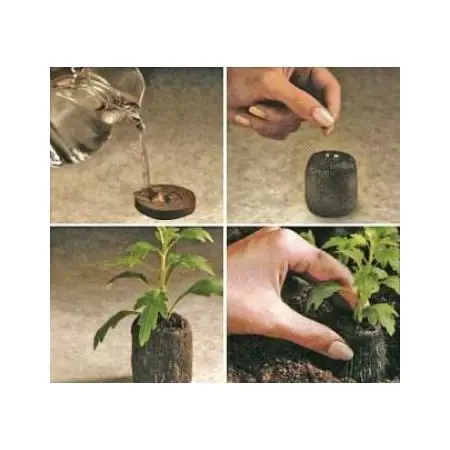 De turftabletjes zijn slechts 0,8 cm dik, maar na toevoeging van 100 ml water zwellen ze in 10 minuten op tot een heus potje van ca 4 cm hoog waarin je rechtstreeks kan zaaien en stekken.