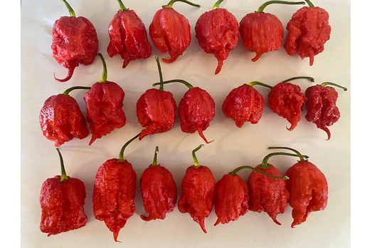 Deze pittige peper is absoluut indrukwekkend. Het heeft een zoete chocolade-kers ondertoon met een vleugje citrus. Het is net zo smakelijk als het heet is.