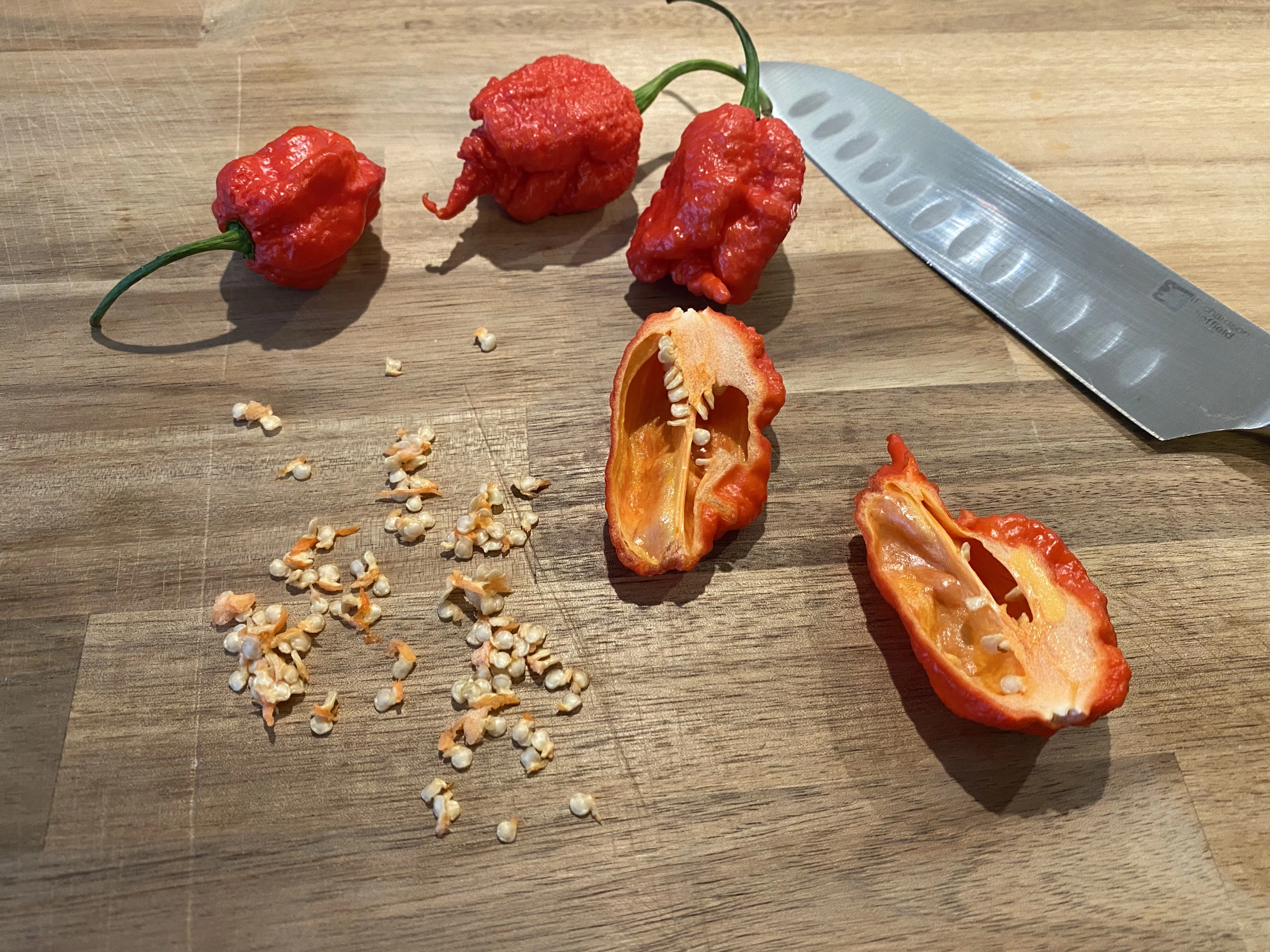 Waarschuwing: het gebruik van deze peper vereist uiterste voorzichtigheid. Draag hand-, oog- en ademhalingsbescherming.